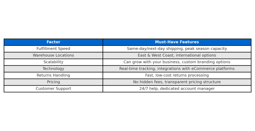 📝 Quick Comparison Table: Key Factors for Choosing a 3PL
