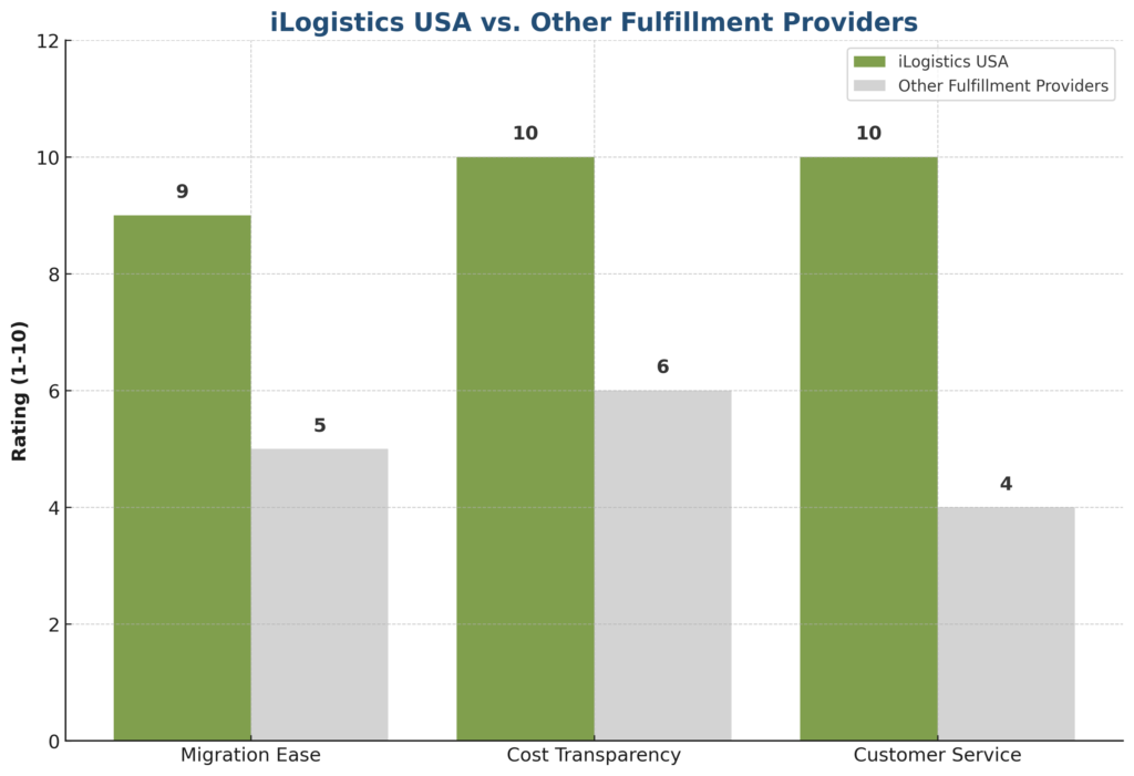 📌 Example: Turtle Tracks Family switched from a large 3PL provider after experiencing week-long processing delays. Since moving to iLogistics USA, their fulfillment time is under 24 hours, improving customer retention and reviews.